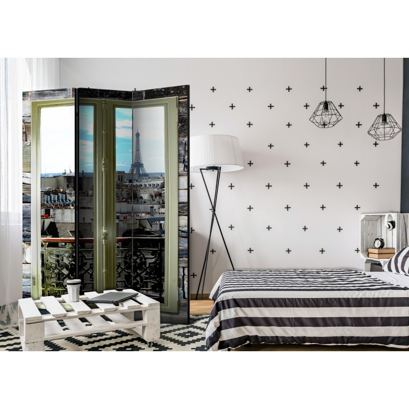 Paravanul decorativ "Parisian View [Room Dividers]" este un decor unic pentru interioarele moderne. Paravanul este compus din 3 părți, realizat din lemn și imprimat pe ambele părți. Vă va împărți spațiul în mod discret și va crea un design interior uimitor. Datorită unei realizări perfecte și a unui design original Full HD, paravanele de cameră oferă un aspect unic oricărui interior. Paravanele decorative pentru locuințe reprezintă o modalitate originală de decorare a interiorului. De remarcat este faptul că posedă aplicații practice - paravanele de cameră pot fi utilizate de ex. pentru a ascunde un uscător de rufe. Reprezintă un decor foarte original care poate fi utilizat atât în cazul spațiilor de locuit, cât și în cazul spațiilor de lucru, de ex: frizerii, cabinete medicale sau chiar și birouri de contabilitate.