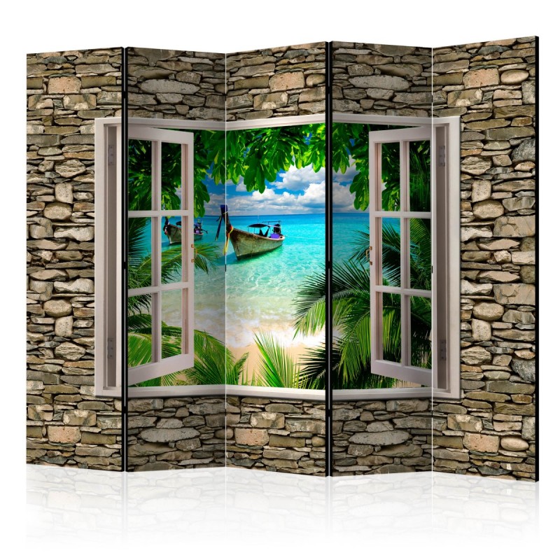 Paravanul decorativ "Tropical Beach II [Room Dividers]" este un decor unic pentru interioarele moderne. Paravanul este compus din 5 părți, realizat din lemn și imprimat pe ambele părți. Vă va împărți spațiul în mod discret și va crea un design interior uimitor. Datorită unei realizări perfecte și a unui design original Full HD, paravanele de cameră oferă un aspect unic oricărui interior. Paravanele decorative pentru locuințe reprezintă o modalitate originală de decorare a interiorului. De remarcat este faptul că posedă aplicații practice - paravanele de cameră pot fi utilizate de ex. pentru a ascunde un uscător de rufe. Reprezintă un decor foarte original care poate fi utilizat atât în cazul spațiilor de locuit, cât și în cazul spațiilor de lucru, de ex: frizerii, cabinete medicale sau chiar și birouri de contabilitate.