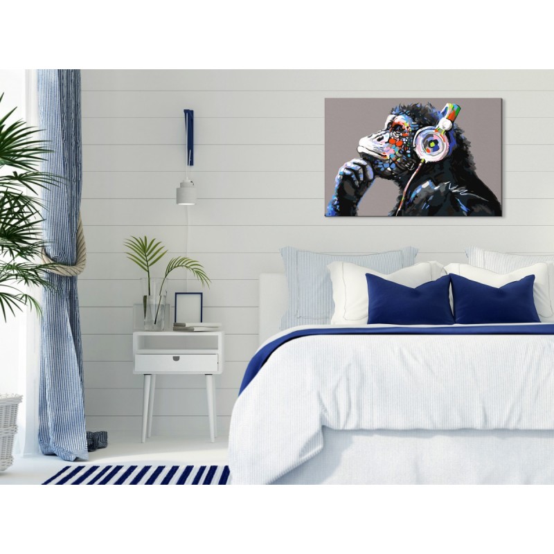 Vrei să te relaxezi într-un mod creativ? Cauți un mod original de a te distra împreuna cu cei dragi și în același timp să-ți dezvolți creativitatea și să te simți ca un adevarat artist? Nimic mai ușor! Descoperă cel mai original hobby al acestui an - pictatul pe numere. Un kit colorat de pictura "Musical Monkey" ce reprezintă o idee inedită pentru petrecerea timpului liber. Kit-ul de pictură pe numere "Musical Monkey" poate fi o activitate pentru oameni de toate vârstele. Perfect pentru pictorii amatori! În plus, rezultatul obținut este e decorațiune gata de expus pe perete.