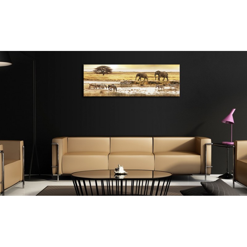 Tabloul de înaltă calitate "Africa: at the waterhole" este imprimat pe o pânză flaușată, care reproduce perfect culorile. Este unul dintre numeroasele modele originale pe care le puteți comanda în magazinul nostru.