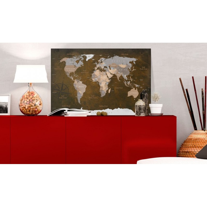 Tabloul din plută "Cinnamon Travels [Cork Map]" este un produs destinat celor care caută decorațiuni originale pentru pereți. Datorită materialului ecologic și designului interesant "Cinnamon Travels [Cork Map]" un panou din plută obișnuit se poate transforma într-o decorațiune elegantă, care poate fi folosită într-o varietate de moduri. Cu ajutorul pionezelor puteți fixa pe mapă poze, notițe, marca locurile vizitate.