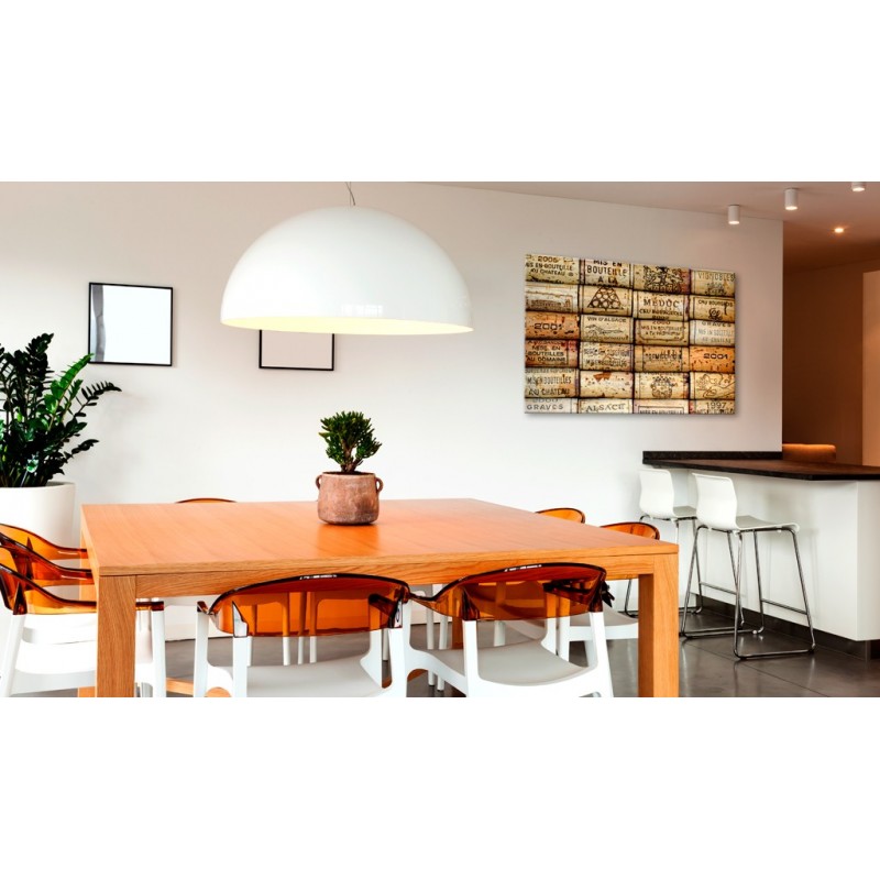 Tabloul din plută "Vineyard of Memories [Cork Map]" este cu mult mai ușor decât decorațiunile tradiționale pentru pereți. Datorită acestui fapt panourile decorative din plută pot fi amplasate în orice loc din locuința dumneavoastră sau din birou. Pânza imprimată se aplică pe panoul din plută. Se caracterizează prin culori intense și reflectă chiar și cele mai mici detalii. Fixați pioneze sau notițe și creați pe perete un design personalizat!