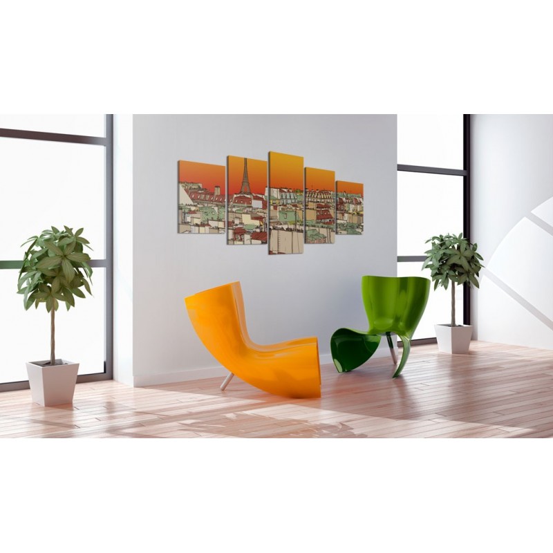 Tabloul de înaltă calitate "Parisian sky in orange colour" este imprimat pe o pânză flaușată, care reproduce perfect culorile. Este unul dintre numeroasele modele originale pe care le puteți comanda în magazinul nostru.