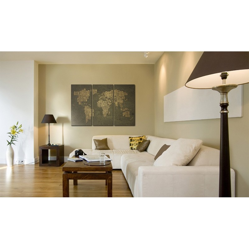 Tablou - The map of the World, German language:Beige continents - triptych