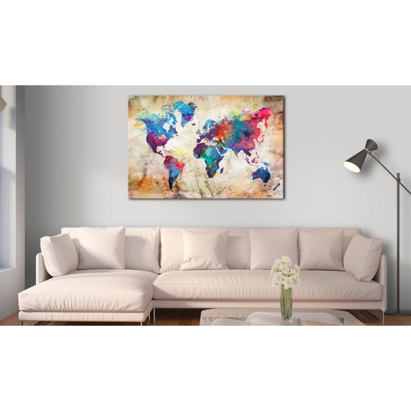 Tabloul de înaltă calitate "World Map: Urban Style" este imprimat pe o pânză flaușată, care reproduce perfect culorile. Este unul dintre numeroasele modele originale pe care le puteți comanda în magazinul nostru.